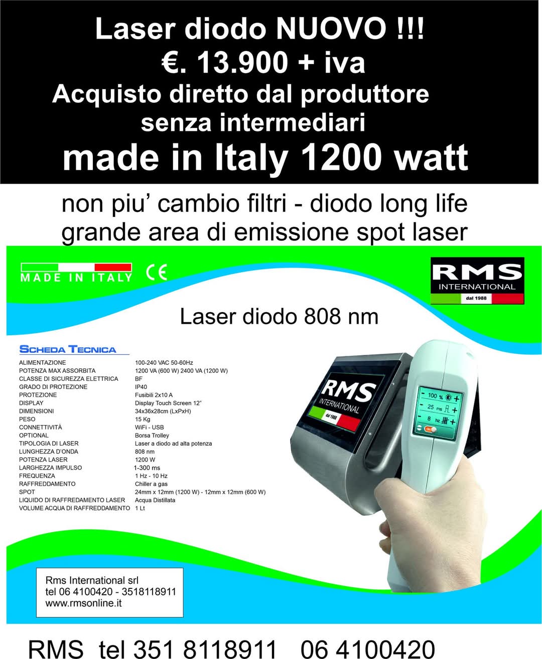 1000 o 1200 WATT, 808 nm.